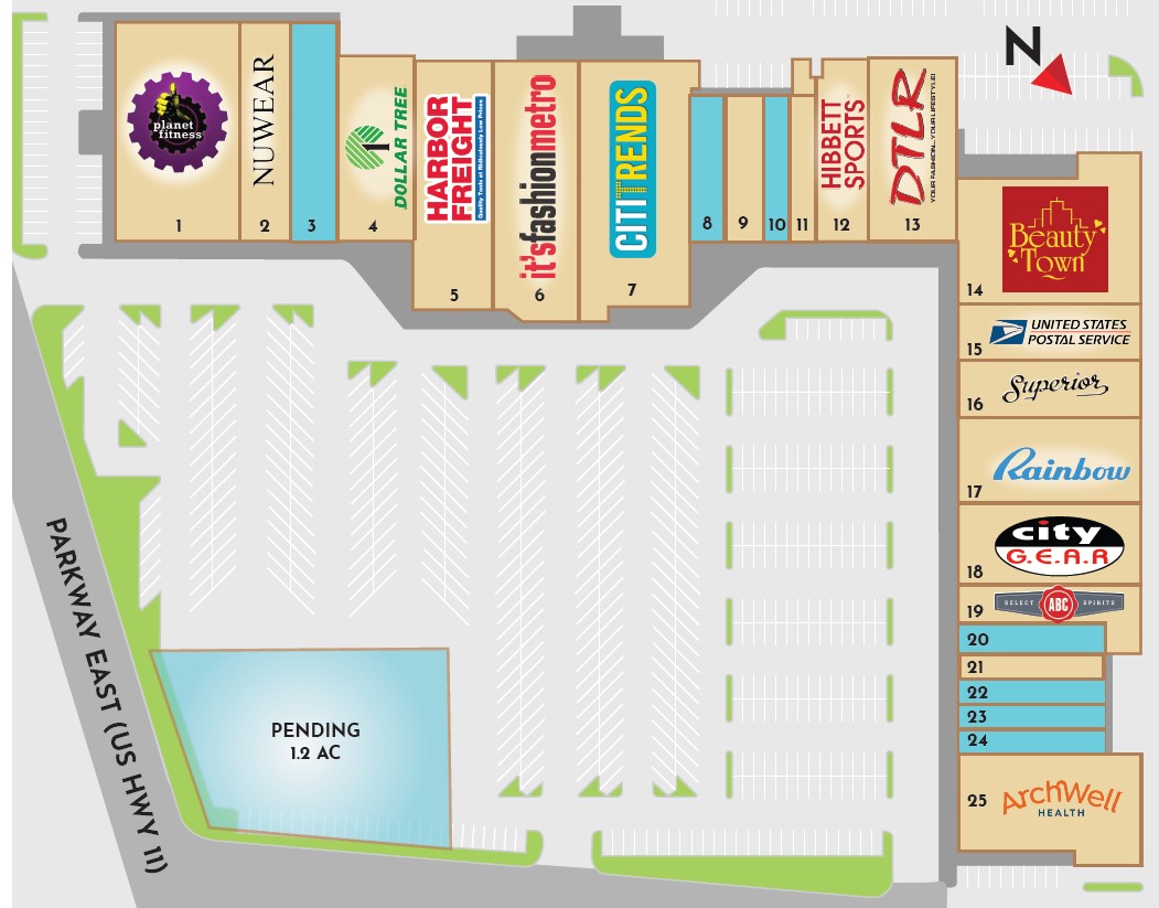 Roebuck Marketplace is located in Birmingham, Alabama at the intersection of Interstate 59 and Parkway East with direct access to Interstate 59. It features 240 feet of frontage on Parkway East, boasting traffic counts in excess of 60,000 cars per day.