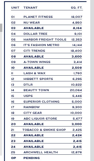 Roebuck Marketplace is a 193,000 square foot center anchored by national and regional tenants including Citi Trends, Harbor Freight Tools, DTLR, Dollar General, Hibbett Sports, Dollar Tree, Planet Fitness and the Alabama Liquor Board. It attracts both convenience and destination shoppers.